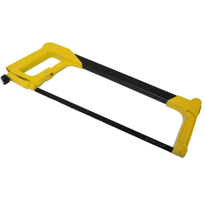 Professionele metaalzaagbeugel met op te spannen zaagblad. Robuust stalen frame met slagvast kunststof greep. Zaagblad 300 mm / 12.Reserve zaagbladen artikel 001786.