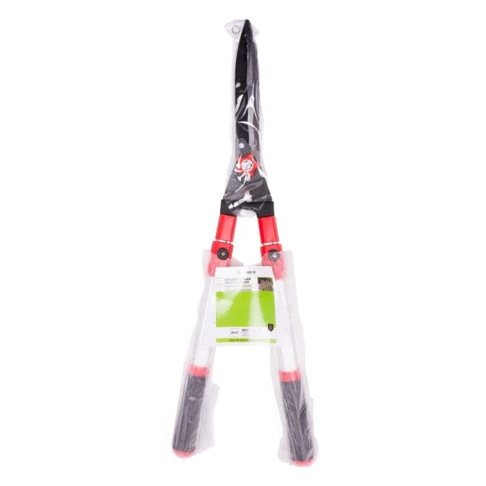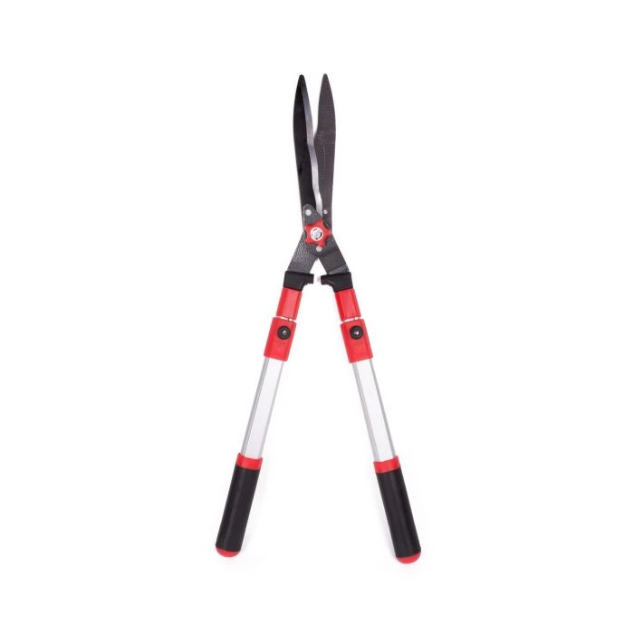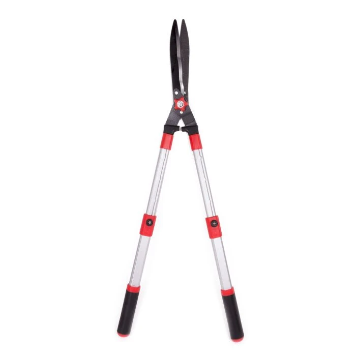 Telescopische heggenschaar Geschikt voor het knippen van hagen en struikenTotale lengte: 650 mm – 900 mmUitschuifbare handgrepen van 350 mm tot 600 mmMet verstelbare spanningsknopVoorzien van ergonomische handgrepen