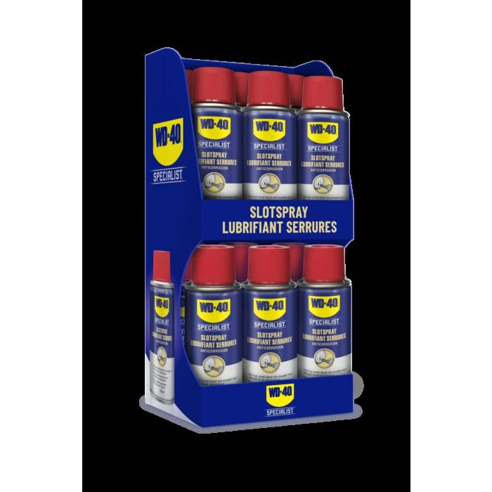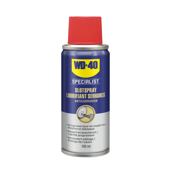 WD-40 Specialist Slotspray is speciaal ontwikkeld voor het onderhouden van slotcilinders (huis, auto, meubels, sloten). De siliconen- en vetvrije formule en de hoge capillaire werking zorgen ervoor dat het product in het cilindermechanisme kan doordringen zonder deze te verstoppen. Het verlengt de levensduur van de sloten en biedt langdurige bescherming tegen corrosie.Producteigenschappen:- Voorkomt slijtage- Anticorrosie formule- Smeert & beschermt- Hoge capillaire werking- Siliconen- en vetvrij- Kan binnen en buiten worden gebruiktToepassingen:- Huisdeursloten- Hangsloten- Kluis-sleutelsloten- Autodeursloten