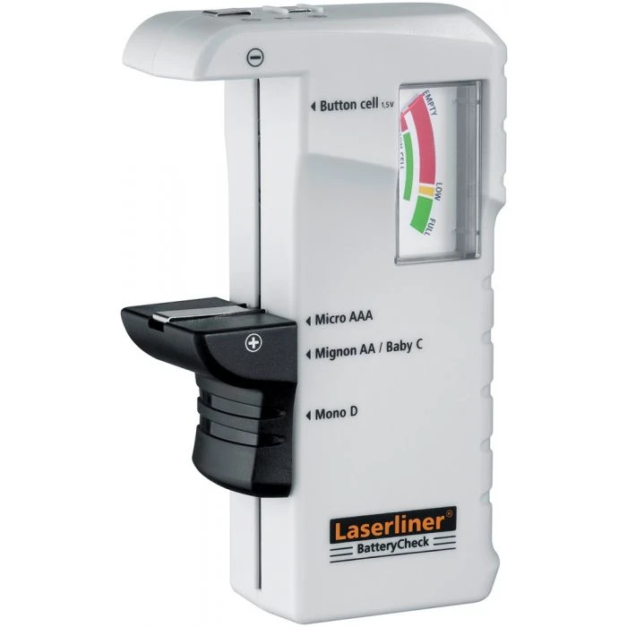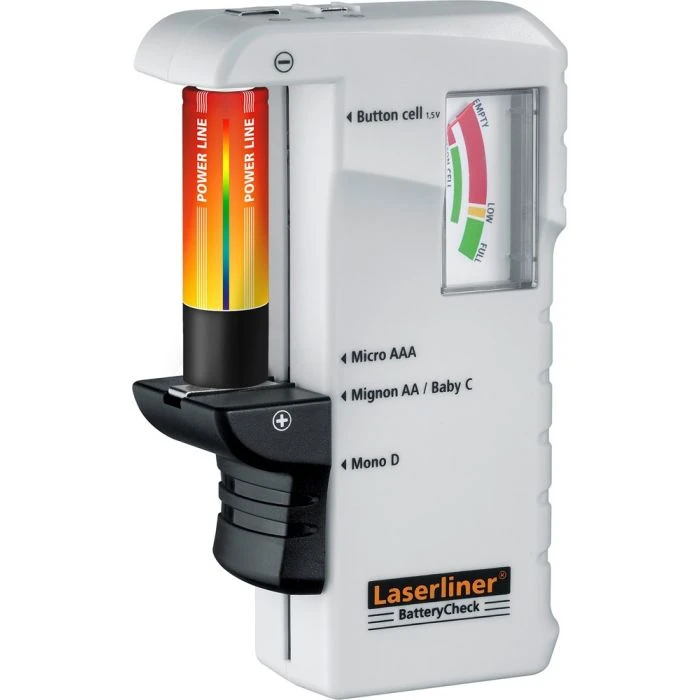 - Voor controle van alle gangbare batterijen (AA / AAA / C / D / E-blok / knoopcellen -kleine bouwvorm)