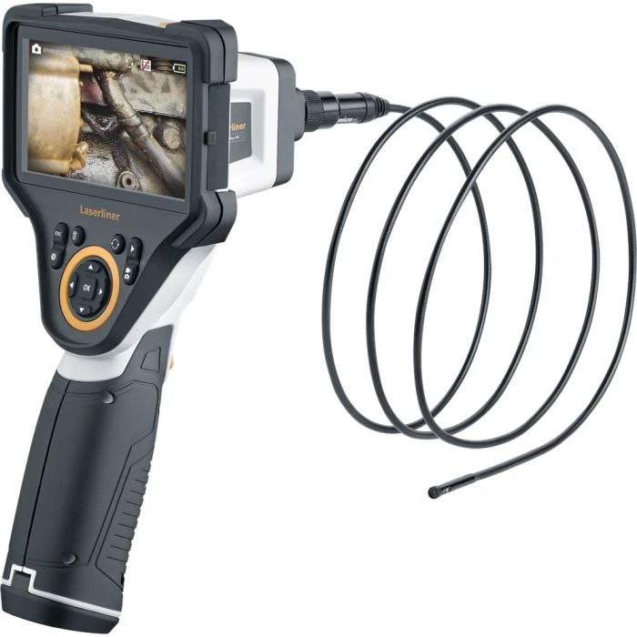Het professionele video-inspectiesysteem met de compacte camerakop is ideaal voor exacte visuele controles in leidingen, holle ruimten in muren en voertuigen. De camera met hoge resolutie biedt zeer gedetailleerde beeld- en video-opnames met 1:1-weergave op het display zonder kwaliteitsverlies. Met de duidelijke digitale zoom kunnen details uitstekend worden herkend. Andere voordelen zijn de eersteklas led-objectverlichting, optimale contrastweergave van grijsschakeringen, benzine- en dieselresistente camerakop en de magnetische standaard voor het plaatsen van de basiseenheid.