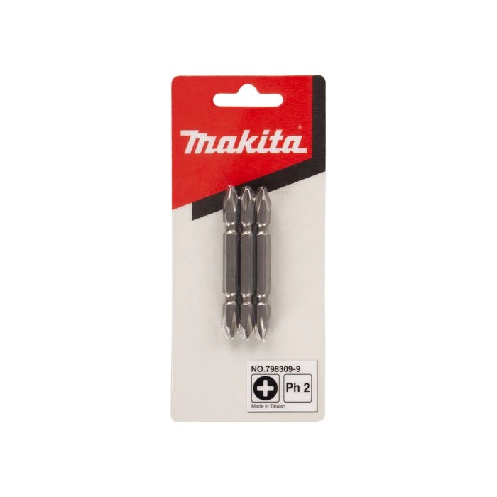 Makita standaard schroefbit dubbelzijdig met aan beide zijdes een PH2-opname. Lengte 65mm. Verpakkingseenheid 3 stuks.