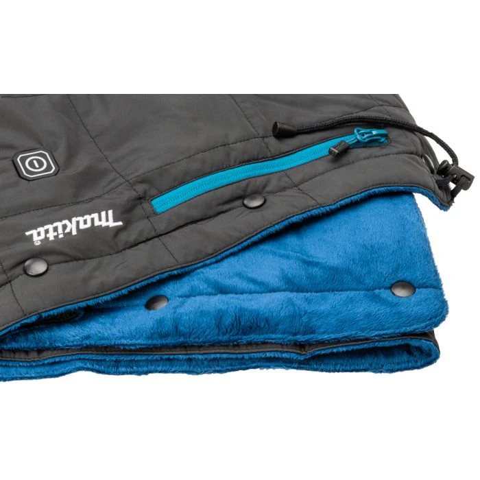 Tot 28 uur verwarming met één 18 V 5,0 Ah LXT accu. Preselectie van drie verwarmingsstanden door knop met LED-indicatie van de gekozen stand. De deken is ook verkrijgbaar voor het CXT-platform. Comfortabele verwarming door één verwarmingselement, centraal aan de bovenkant van de deken. Adapter voor LXT accu en 1,5 meter verlengkabel zijn bijgesloten, adapter is voorzien van extra USB aansluiting. Buitenkant van polyester stof, binnenkant fleece gevoerd. Accuaansluiting in opbergpocket met rits, aan de zijkant van de deken. Voorzien van drukknopen en aantrekkoord, deken kan ook om middel of schouders gedragen worden. Geschikt voor wasmachine en droger (zie gebruikershandleiding). Lees de veiligheidsinstructies en gebruiksaanwijzing goed door voor gebruik.
