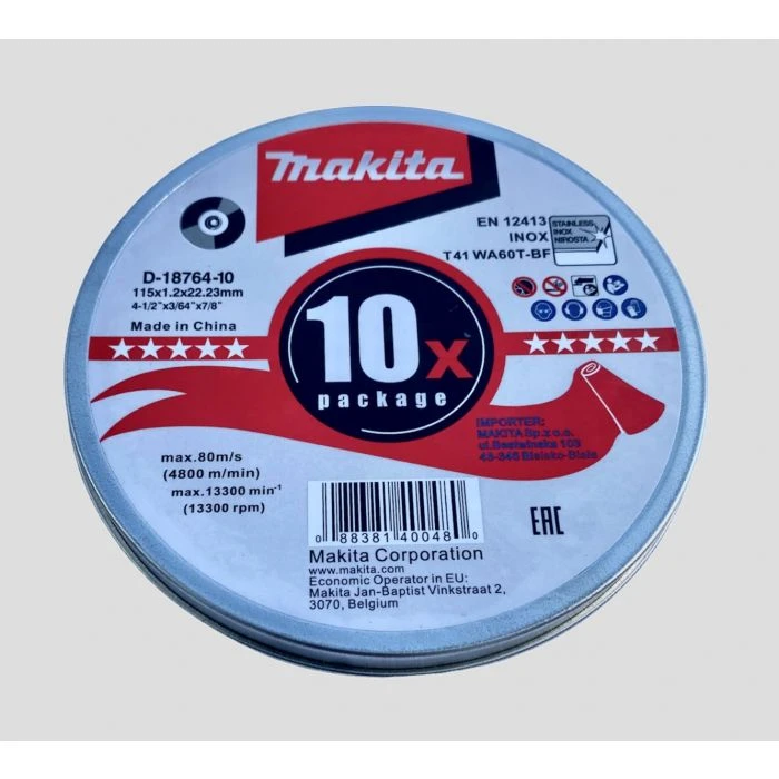 Blikje met 10 doorslijpschijven RVS 115×22,23×1,2mm.