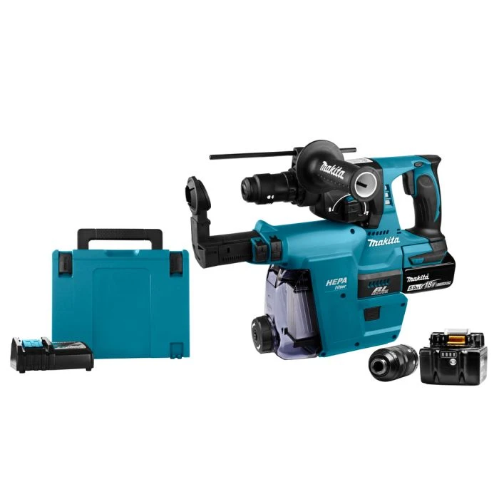 Lichte en compacte machine met drie functies: boren, hamerboren en breken (licht). In combinatie met de stofafzuiging is de maximale boorlengte inclusief SDS-PLUS aansluiting 160 mm. Ideale combihamer voor gaten tot 14 mm, maar kan tot 24 mm in beton. TNO gecertificeerd voor stofvrij werken. Hoge productiviteit door gebruik van een energie efficiënte borstelloze motor. Uitgerust met twee verwisselbare boorkoppen: een SDS-PLUS en snelspanboorkop. Duurzame machine door beveiliging tegen overbelasting, oververhitting en diepontlading van de accu. Door de ergonomie van de machine is het gemakkelijk en prettig boren in zowel plafond, vloer als in de muur.