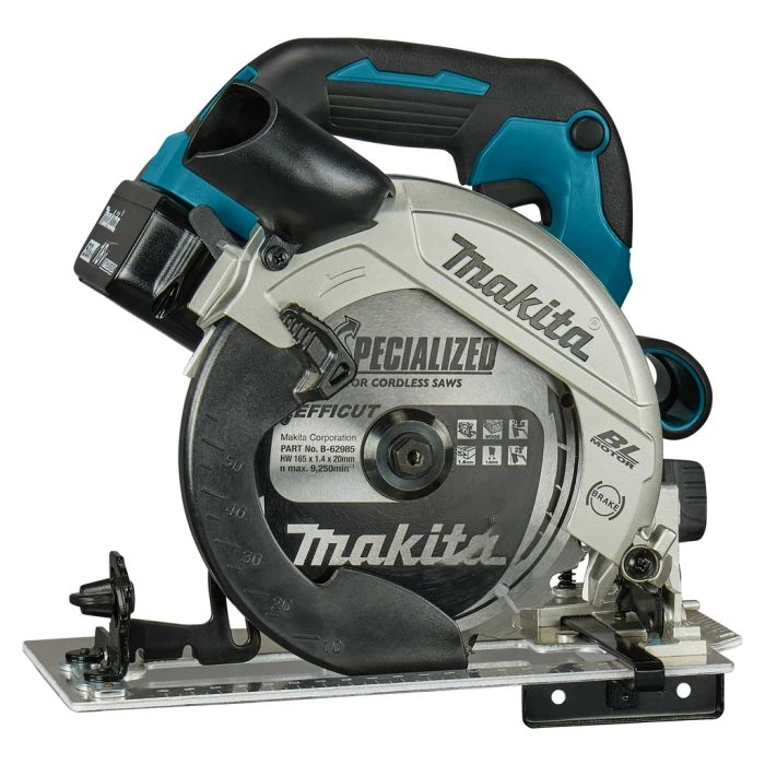 Compacte en lichte 165 mm cirkelzaag met een verstekinstelling tot 50°. Beschikt over Automatic torque Drive Technology (ADT): de machine past bij weerstand elektronisch de zaagsnelheid en het koppel aan voor behoud van kracht. Hogere veiligheid: voorzien van elektrische motorrem, zaagblad staat snel stil. De soft start functie zorgt ervoor dat de machine rustig start. Standaard uitgerust met efficut zaagblad, waardoor de machine sneller en zuiverder zaagt en langer zaagt op één acculading. Dubbele led-verlichting: verlicht het zaagblad en zaaglijn voor beter zicht op het werk. Luchtstroom blaast zaagsel weg van de machine. Externe stofafzuiging mogelijk. Duurzame machine voor de accu’s door beveiliging tegen overbelasting, oververhitting en diepontlading van de accu. Energiezuinige machine dankzij koolborstelloze motor.