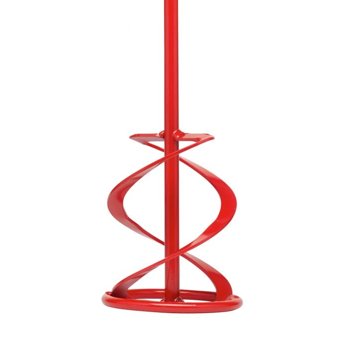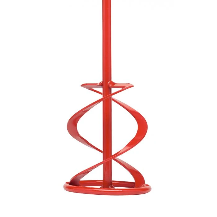 Menggarde met 2 bladen en M14 aansluiting. Deze menggarde mengt het materiaal van onder naar boven, wat voorkomt dat zwaardere stoffen onderin de kuip bliijven liggen. De menggarde is hierom uitermate geschikt voor het mengen van taaie materialen zoals cement, kwartsgevuld epoxyhars, cementpleister, mortel en beton.