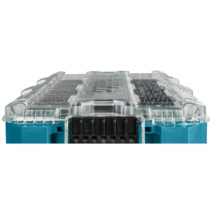 MAKTRAK Organizer Plat MAKTRAK Maktrak Organizer Plat is een robuuste en modulaire opbergoplossing voor het veilig vervoeren, opbergen en organiseren van accessoires, bevestigingsmateriaal en klein gereedschap op de bouwplaats. Met een inhoud van 8,14 liter biedt deze organizer maximale efficiëntie in een compacte vorm. De organizer heeft een transparante deksel voor direct zicht op de inhoud en stevige, handschoenvriendelijke sluitingen voor snelle toegang. De lage opbouw is ideaal voor het overzichtelijk ordenen van kleine onderdelen. Toepassing Perfect voor installateurs, monteurs, elektriciens, aannemers en andere professionals die hun kleine onderdelen, bevestigingsmaterialen of componenten overzichtelijk willen opslaan én snel toegankelijk willen houden. Het modulaire ontwerp wat eenvoudig met andere MAKTRAK™ modules is te combineren maakt het ideaal voor intensief gebruik op de bouwplaats én eenvoudig vervoer in werkbussen.