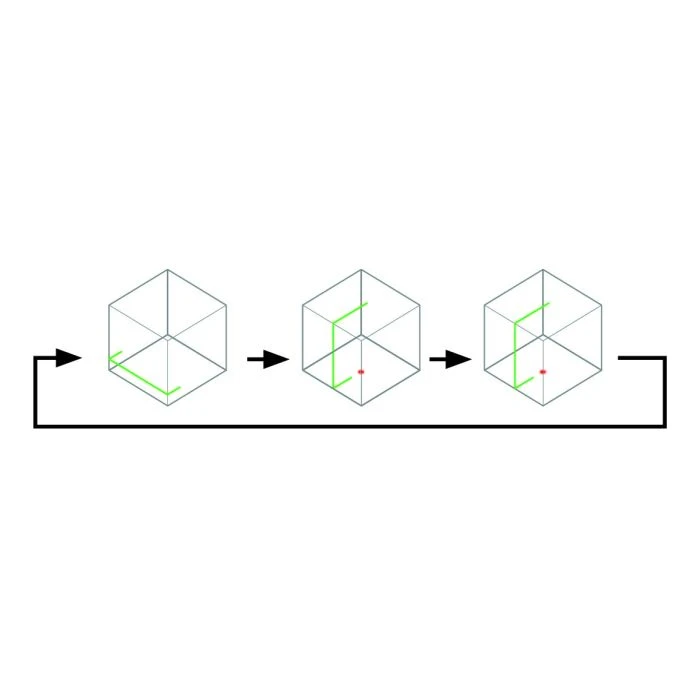 Eenvoudig en nauwkeurig verplaatsen van de verticale lijn middels draaiknop.Één loodpunt onder de laserLaser is uitgerust met een pendelmechanisme wat magnetisch gedempt wordt, hierdoor is de laser snel genivilleerd.